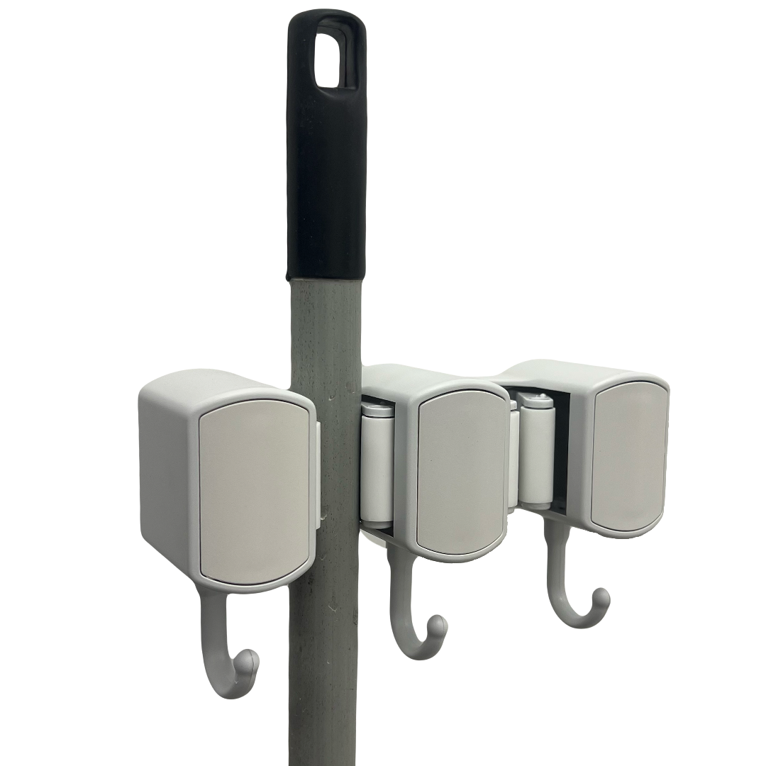 ORGANIZADOR DE ESCOBAS (2 SOPORTES + 3 GANCHOS)